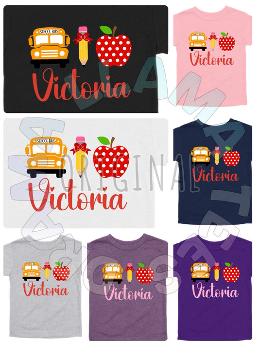Back to School Split Bow Pencil Name Tees *multiple color options*